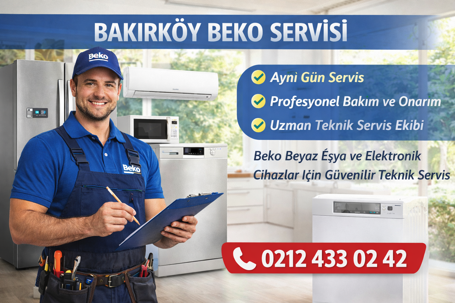 Bakırköy Beko Servisi, Beko marka beyaz eşya ve elektronik cihazlarınızda oluşan arızalar için profesyonel teknik servis hizmeti sunmaktadır. Günlük yaşamda sıklıkla kullanılan buzdolabı, çamaşır makinesi, bulaşık makinesi, klima, fırın ve kurutma makinesi gibi cihazlar zamanla arızalanabilir. Bu gibi durumlarda hızlı ve güvenilir bir teknik servis desteği almak oldukça önemlidir. Bakırköy Beko Servisi olarak deneyimli teknik…