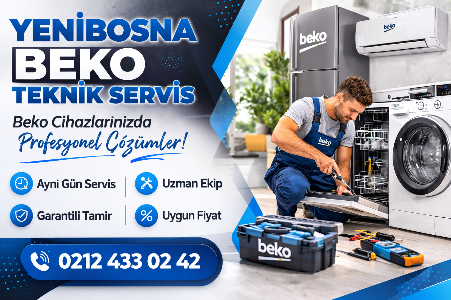 Yenibosna Beko Teknik Servisi Hizmetleri Yenibosna Beko teknik servisi olarak birçok beyaz eşya ve elektronik cihaz için profesyonel servis hizmeti sunmaktayız. Beko Çamaşır Makinesi Servisi Çamaşır makinelerinde sık görülen su almama, sıkma yapmama, çalışmama veya ses yapma gibi arızalar uzman ekiplerimiz tarafından kısa sürede giderilmektedir. Beko Bulaşık Makinesi Servisi Bulaşık makinesi su boşaltmıyor, temiz yıkamıyor…