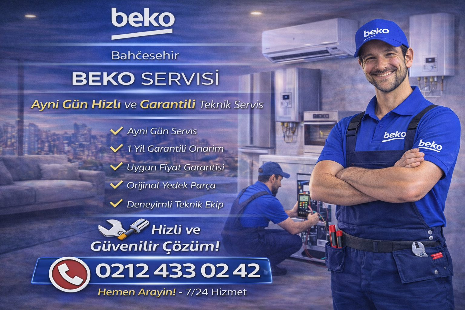 Bahçeşehir Beko servisi olarak, beyaz eşya ve elektronik cihazlarınızda oluşan tüm arızalara hızlı, güvenilir ve garantili teknik servis hizmeti sunuyoruz. Uzman teknik ekibimiz sayesinde arızalara kısa sürede müdahale ediyor, cihazlarınızı ilk günkü performansına kavuşturuyoruz. Ayrıca, aynı gün servis hizmeti ile beklemeden çözüm alabilirsiniz.