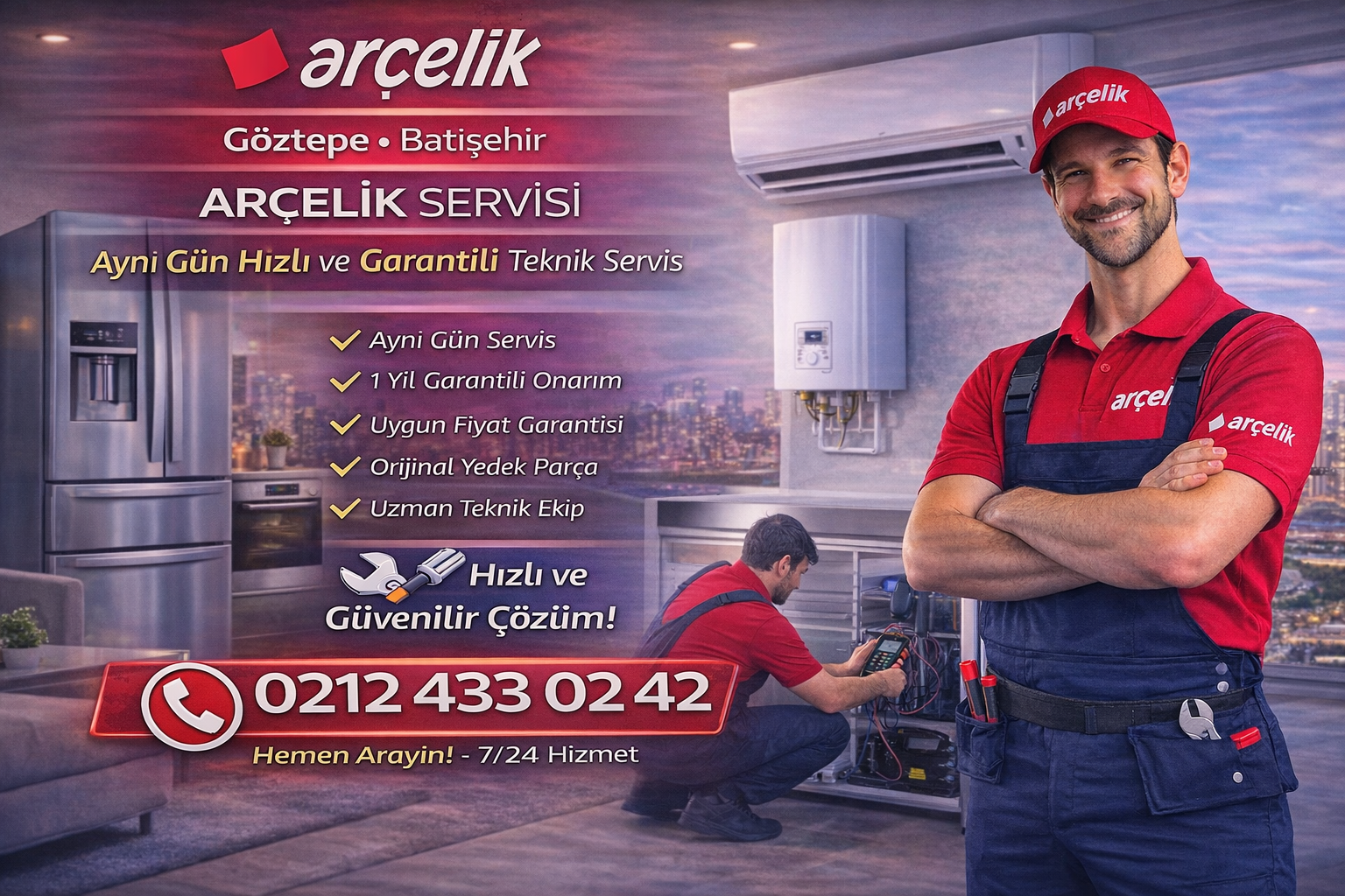 Göztepe Batışehir Arçelik servisi olarak, beyaz eşya ve elektronik cihazlarınızda oluşan tüm arızalara hızlı, güvenilir ve garantili teknik servis hizmeti sunuyoruz. Uzman teknik ekibimiz sayesinde arızalara kısa sürede müdahale ediyor, cihazlarınızı ilk günkü performansına kavuşturuyoruz. Ayrıca, aynı gün servis imkanı ile beklemeden profesyonel destek alabilirsiniz.
